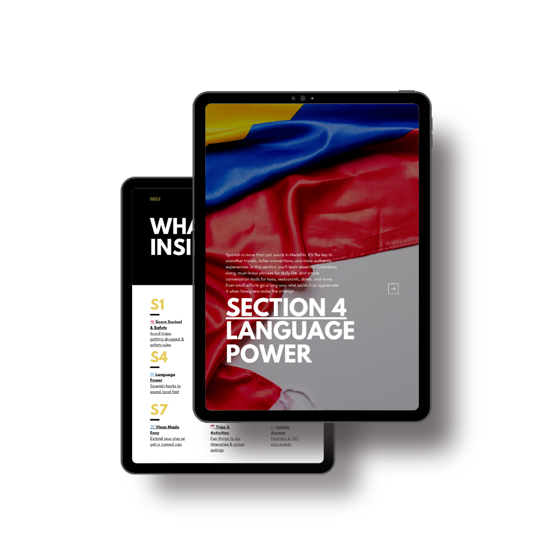 ✅ Absolutely. Inside, you’ll find the core phrases, local slang, and Medellín-specific expressions that locals actually use every day. It’s practical language you can use to order food, meet people, and navigate the city with confidence far beyond what apps like Duolingo can offer.
