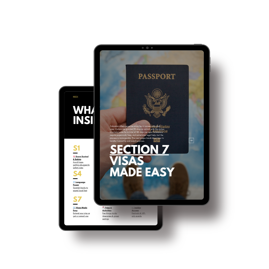 No worries. Before diving into the Premium experience, make sure to download your Free Starter Pack. It’s documented with must-know information before you land, safety measures to follow, transportation tips to get around the city, the best areas to stay in during your trip, and much more so you're fully prepared from day one in Colombia.